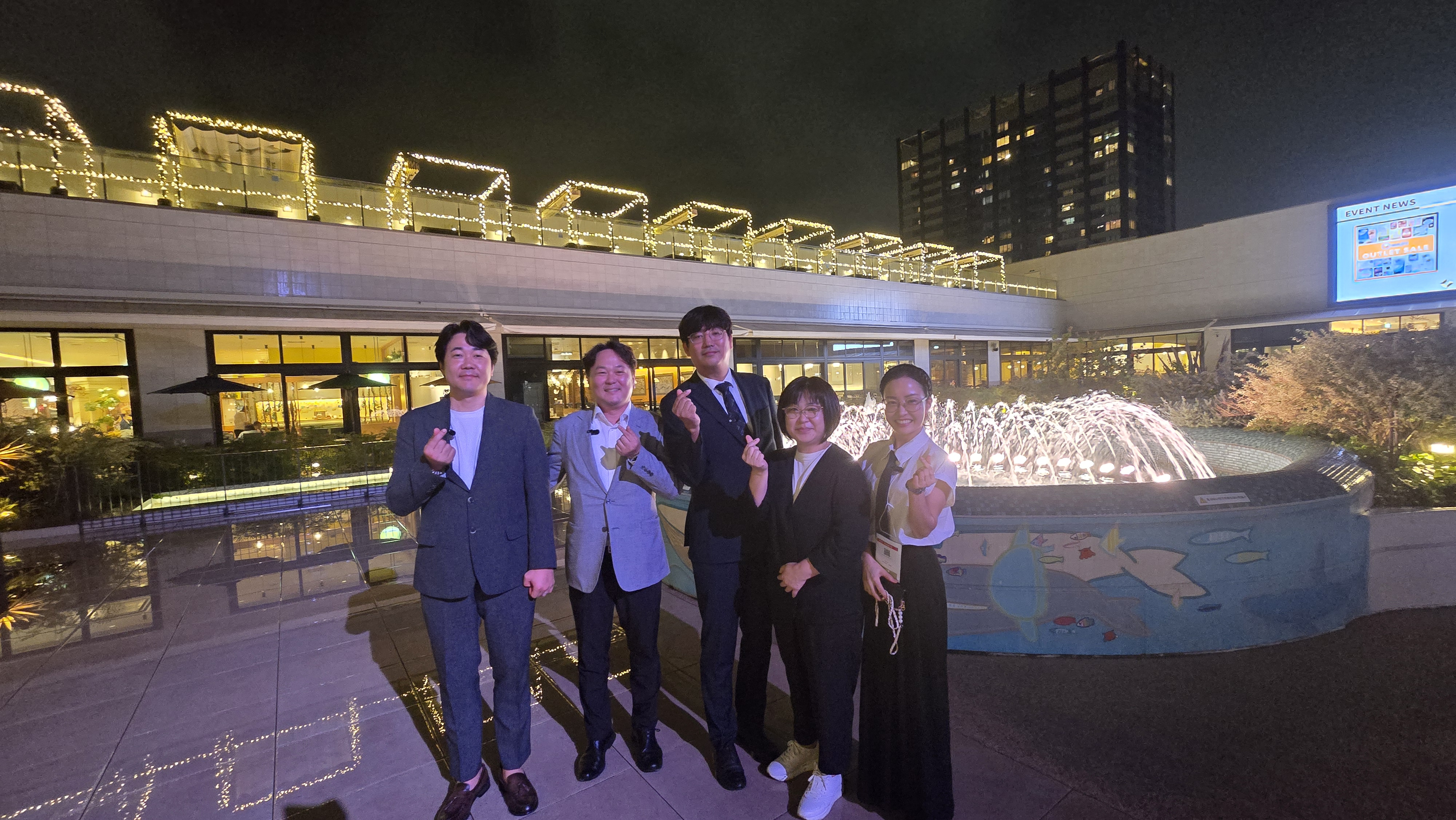 첫날 도착하여 혼자서 아리아케호텔 옆 아리아케 가든 간담회 장소 물색하였는데, 음악도 나오고 뒤에 분수대도 있고, 분위기 엄청 좋은 곳 발견. 비가 살짝 내리고 있어 운치도 있고, 사람들이 없어서 한적함. 야외 간담회는 처음이라 잘 될지 살짝 걱정되기도~