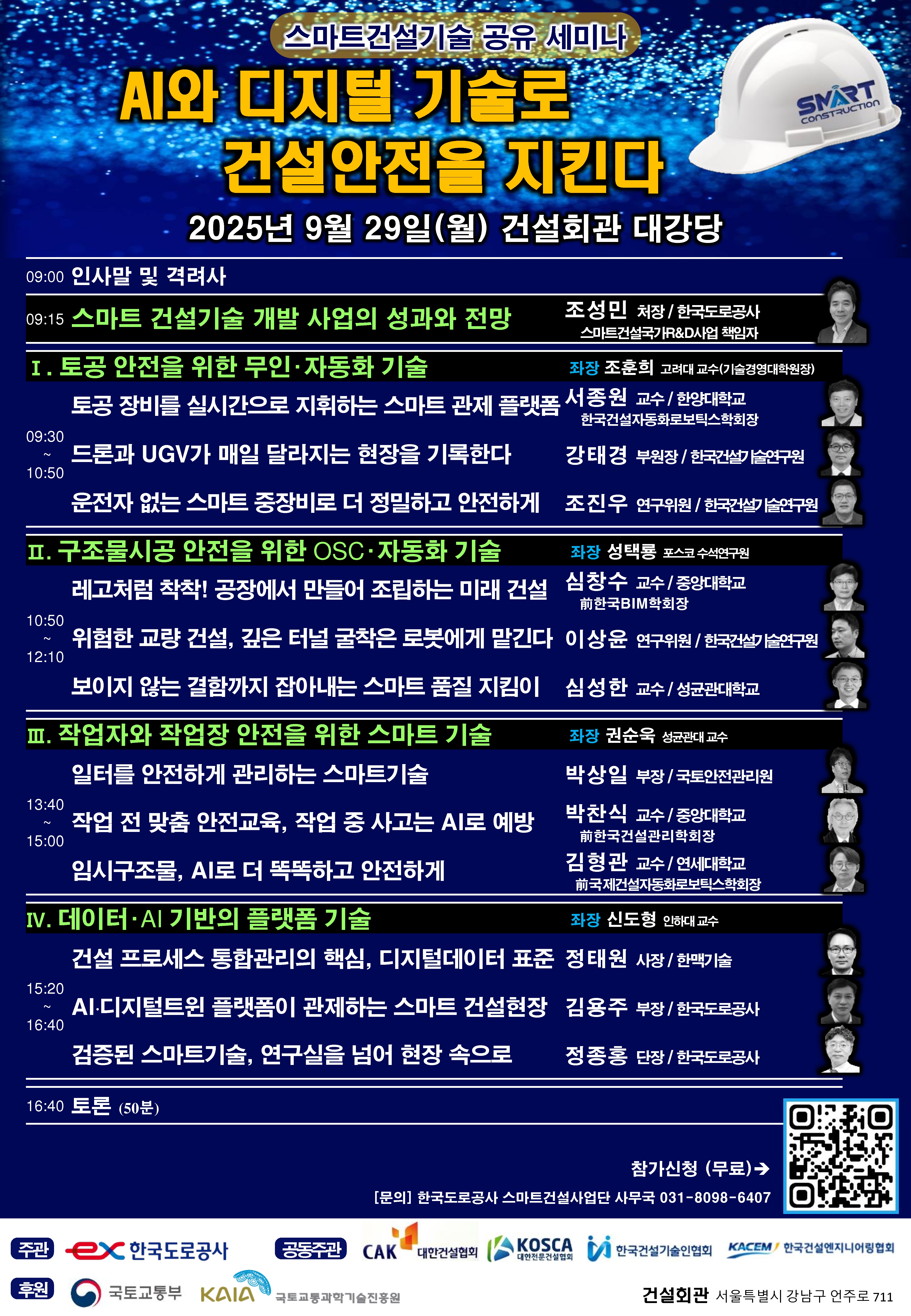 AI와 디지털 기술로 건설안전을 지킨다 세미나 9.29일(월) 건설회관 대강당