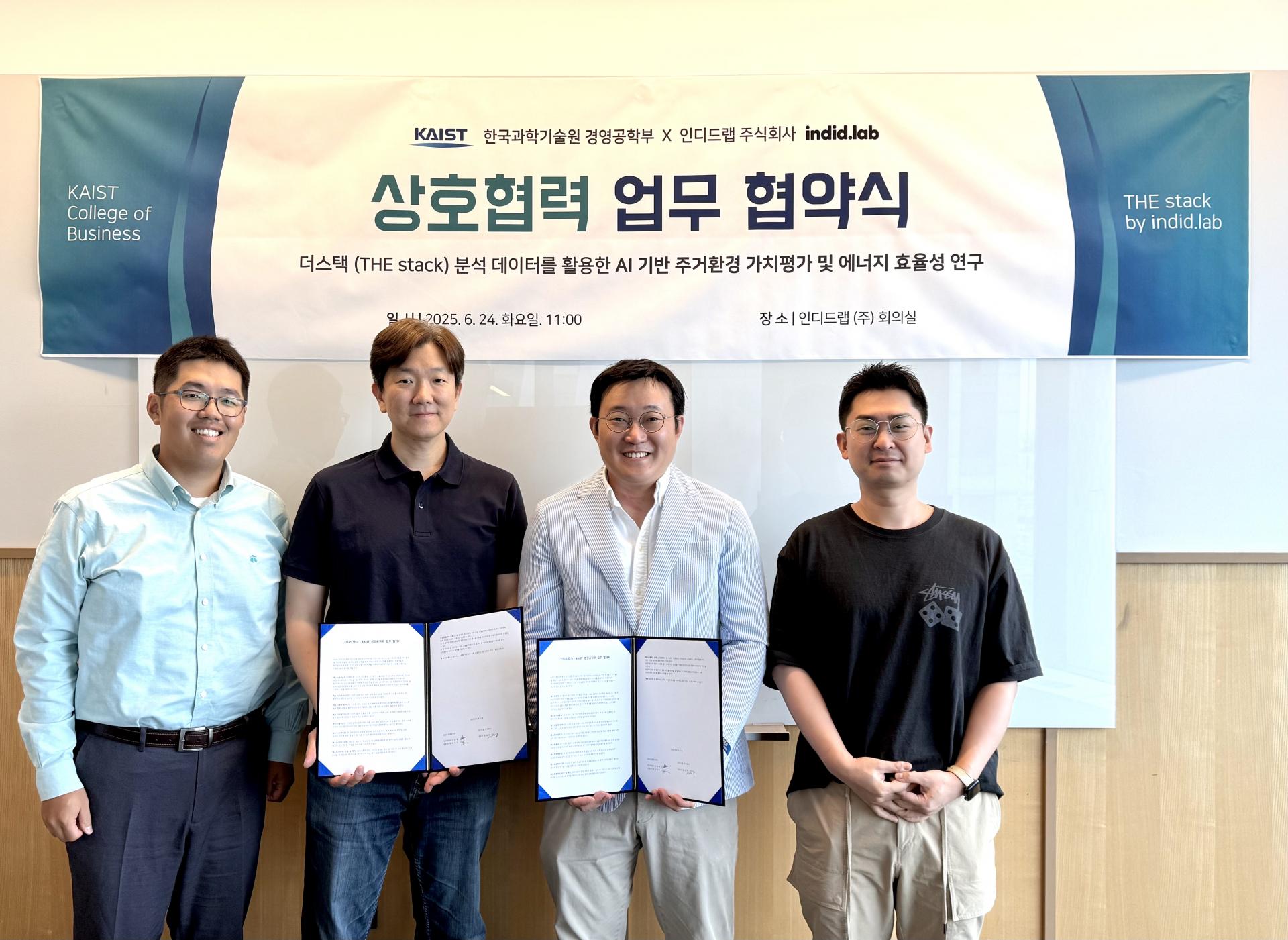 더스택 서비스를 운영하는 인디드랩 주식회사는 KAIST 경영공학부와 AI 기반 공동주택 가치 평가 및 에너지 효율성 연구를 위한 업무협약(MOU)을 체결하고, 데이터와 연구 역량을 결합한 학술·산업 협력을 본격화한다.