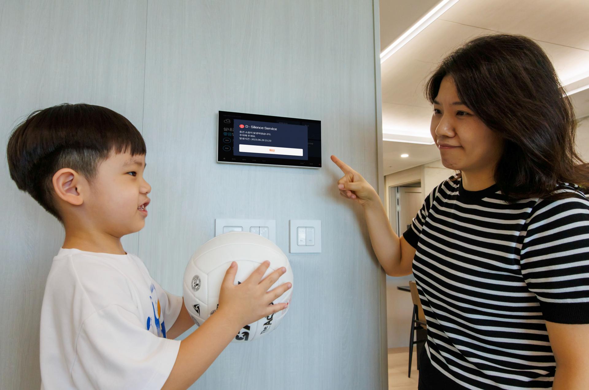 D-사일런스 서비스는 아파트 거실과 세대 팬트리 벽면 등에 설치한 센서가 일정 수준 이상의 바닥 진동을 감지하면 월패드로 자동 알림을 보낸다.